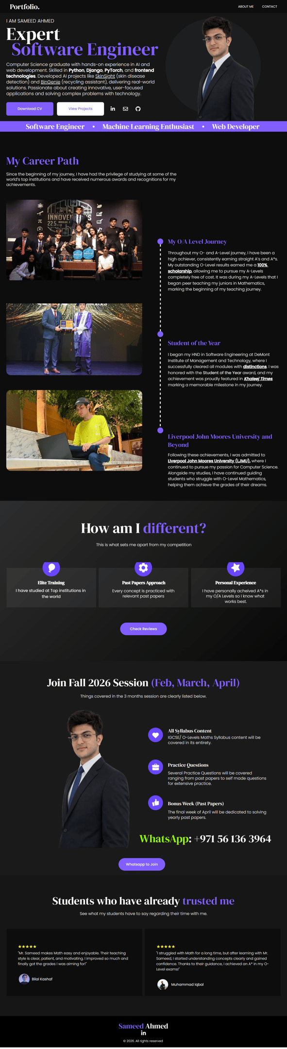 Following these achievements, I was admitted to Liverpool John Moores University (LJMU), where I continued to pursue my passion for Computer Science. Alongside my studies, I have continued guiding students who struggle with O-Level Mathematics, helping them achieve the grades of their dreams.