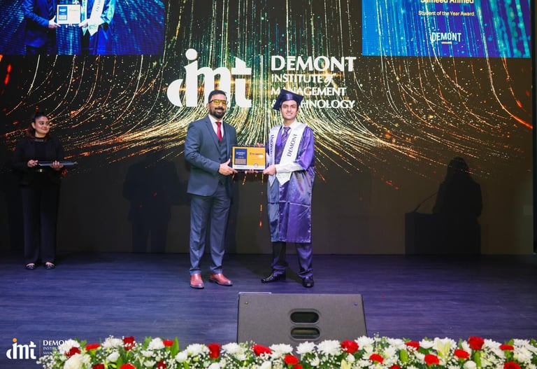 I began my HND in Software Engineering at DeMont Institute of Management and Technology, where I successfully cleared all modules with distinctions. I was honored with the Student of the Year award, and my achievement was proudly featured in Khaleej Times, marking a memorable milestone in my journey.